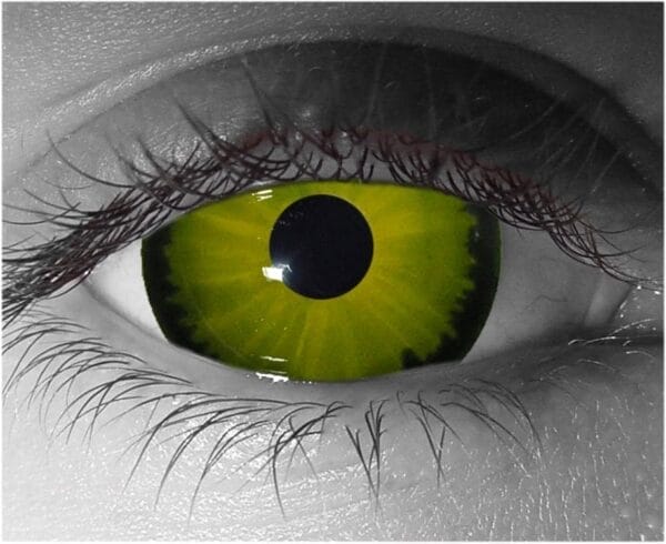 Alternative option for this green Gorgon Sclera for your consideration is the yellow Avatar Sclera with smaller limbal ring or the totally different design Skeletal Teeth Sclera contact lenses.